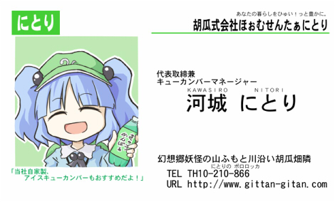 また新刊1部につき1枚、にとりの名刺をお付けいたします。