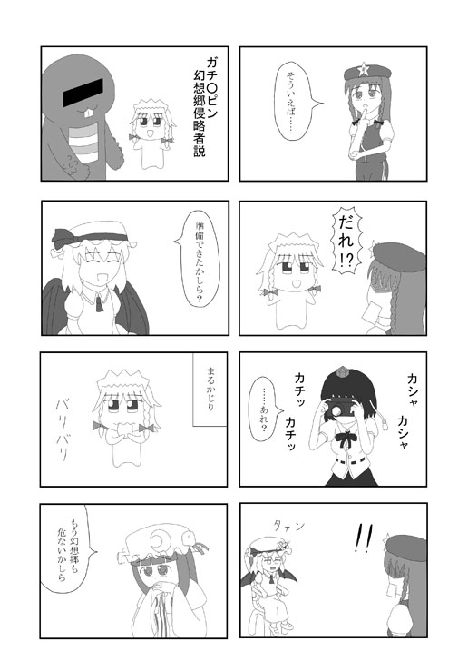 >「(新刊表紙の)ルーミアがパッと見てヴァイオリンを弾いていると思ったらみすちーを喰っていた」